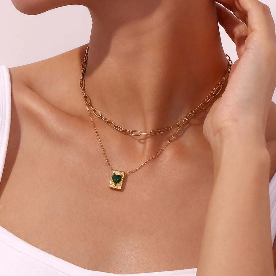 Love Plated Necklace! Totally in love with this one! This necklace with a rectangular pendant covered with beautiful glittering heart stone is super nice to combine witha variety of necklaces ✨