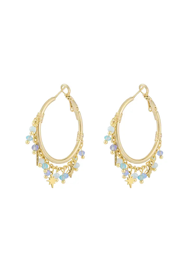Are you looking for trendy earrings? Then these earrings with pendants are for you! The earrings are made of stainless steel and glass beads. The size is 3 by 4 cm. Add a touch of glamor to your ensemble with our trendy earrings! From subtle studs to striking pendants, we have something for everyone.