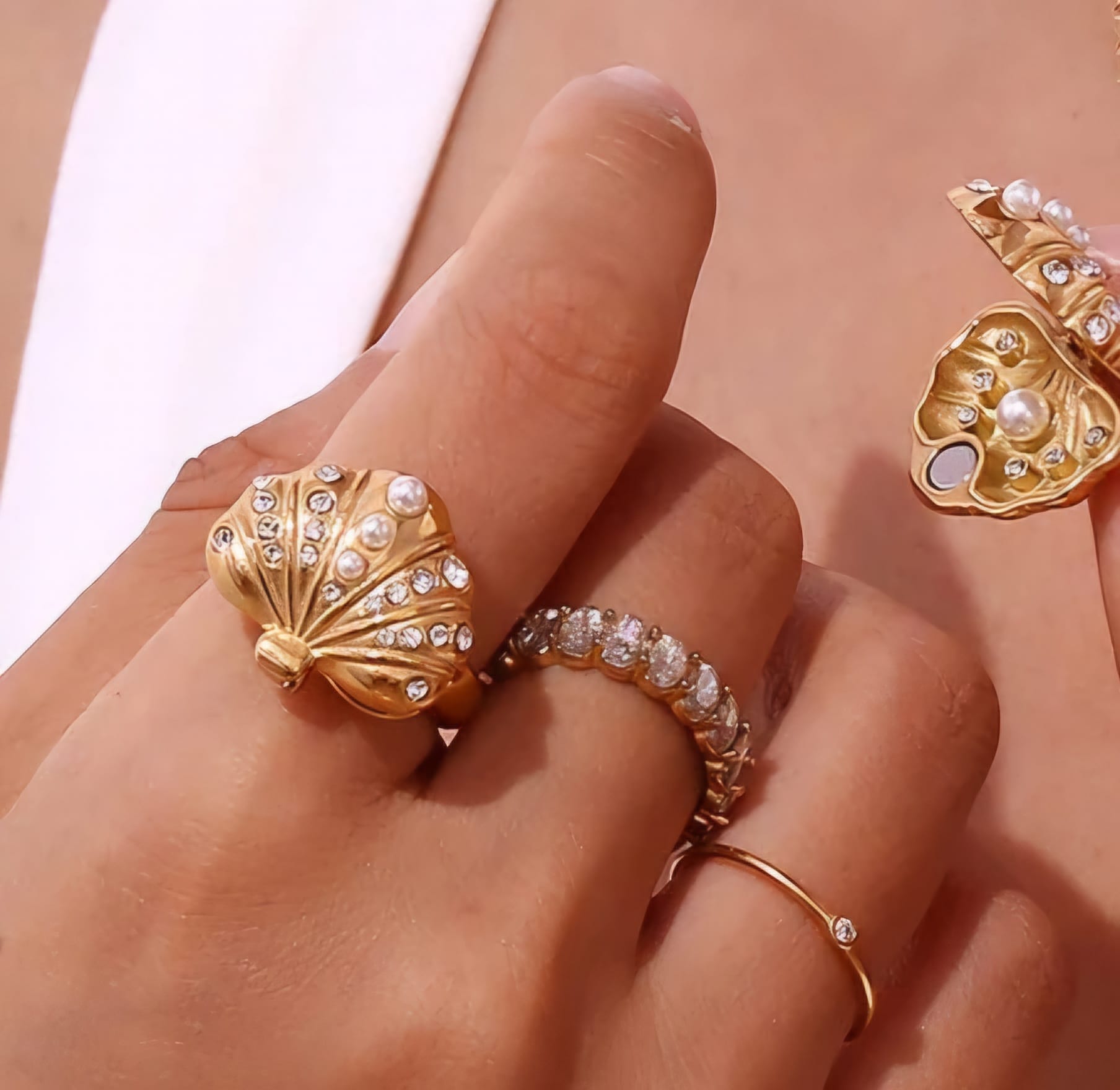 Venus Ring!We zijn dol op deze ring. Dit speciale item is iets wat je zelden vindt.๐ Dit is zo'n schattige stetement ring die open kan en je vindt een parel๐๐
